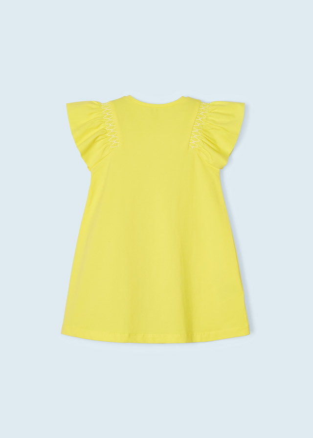 Красивое платье приятного желтогооттенка с вышитыми полевыми цветамии волнистыми рукавами будет самымлюбимым у Вашей дочки этим летом.