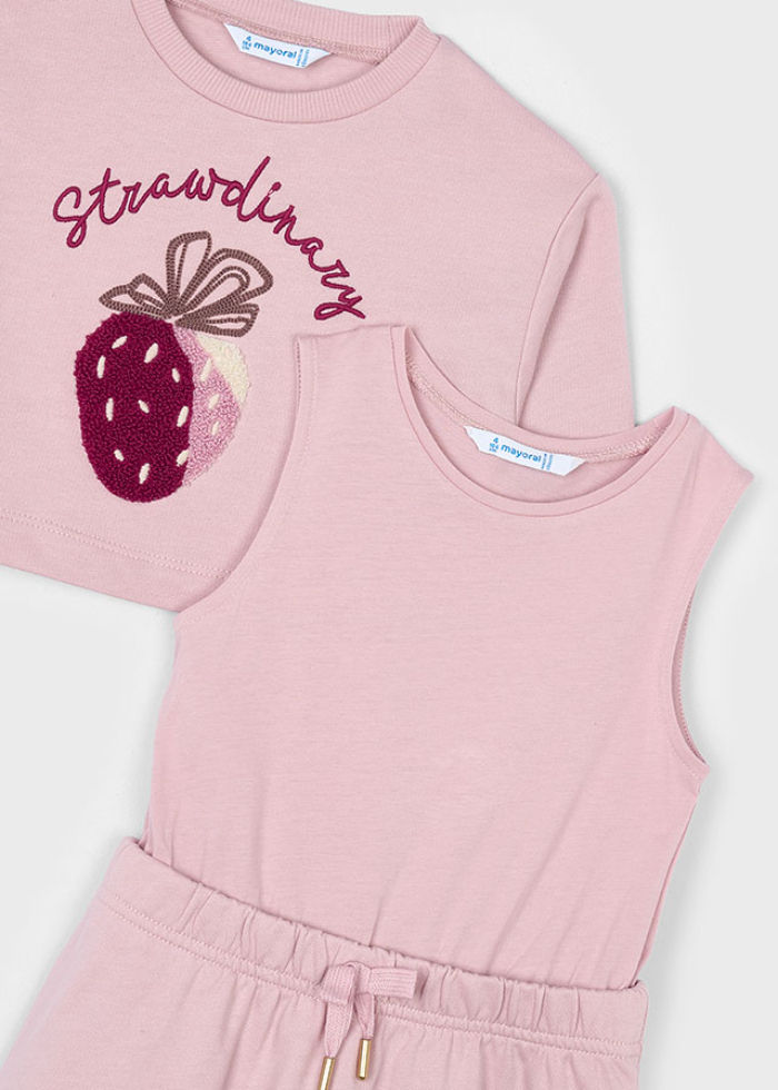 Очень эффектный комплект из укроченногопуловера и удобного платья с юбкойсделает будничный день настоящим праздником,ведь дочка привлечет к себе внимание всех вокруг.