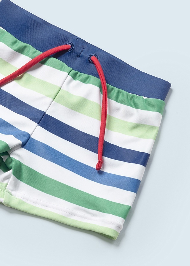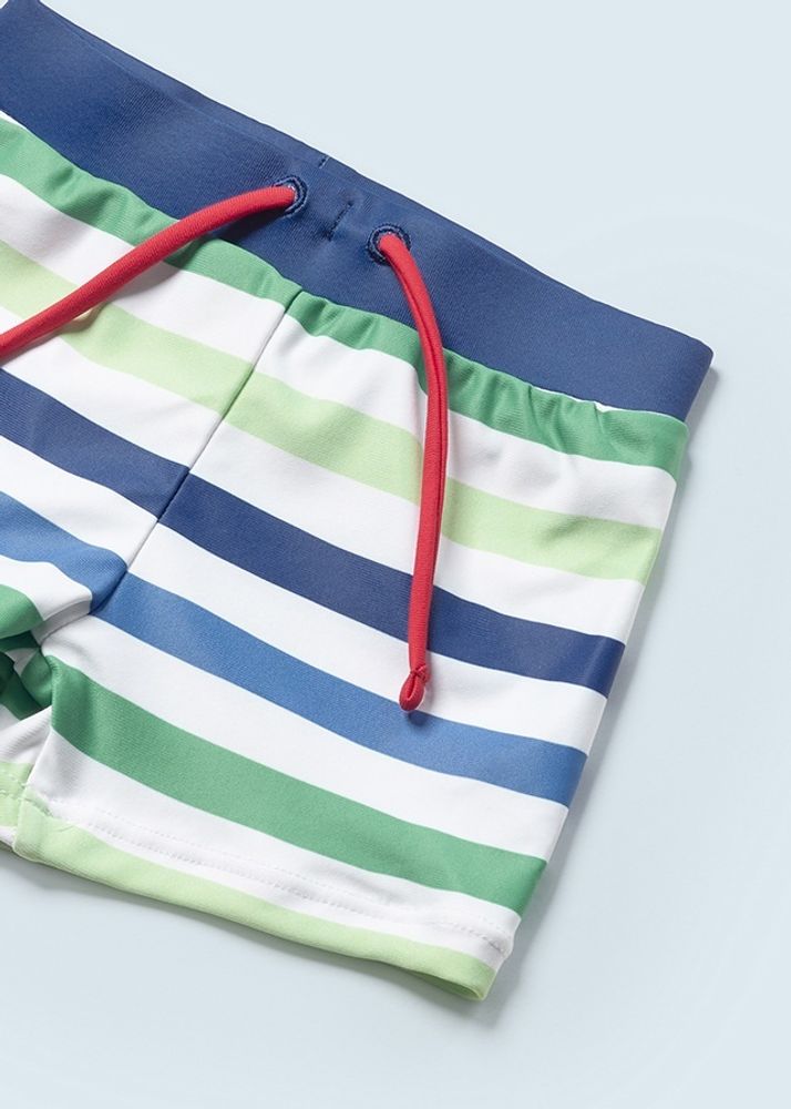 Полосатые плавки-шорты зеленыхи синих оттенков очень удобные.Они отлично подойдут дляактивного отдыха на пляжеили для бассейна.