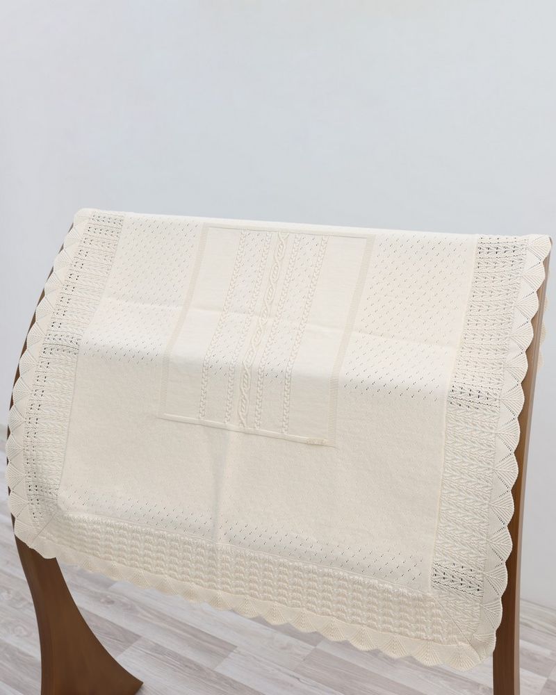Очень красивый трикотажный пледидеально подойдет для малыша. Им можнонакрывать малыша не только в кроватке, но ив коляске во время прогулок. За счетприятного оттенка одеяло смотрится очень нежно и мило.