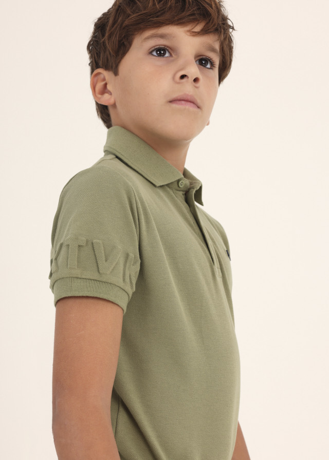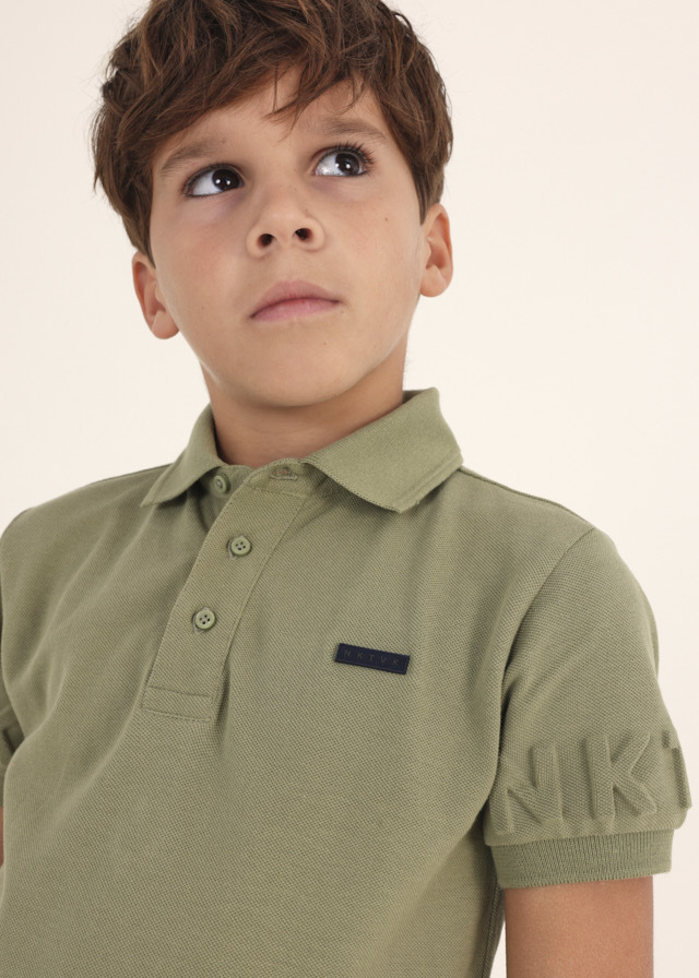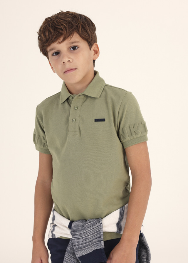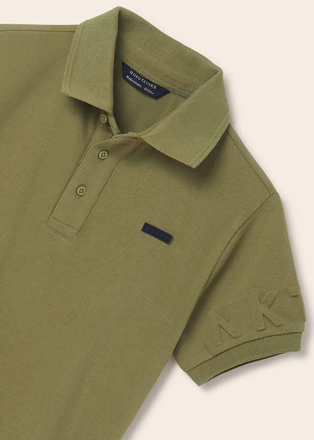 Очень комфортное поло натуральногозеленого оттенка станет отличнойбазовой вещью в гардеробе Вашегомальчика.