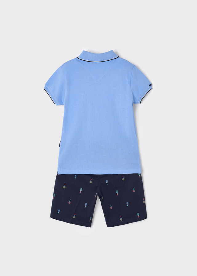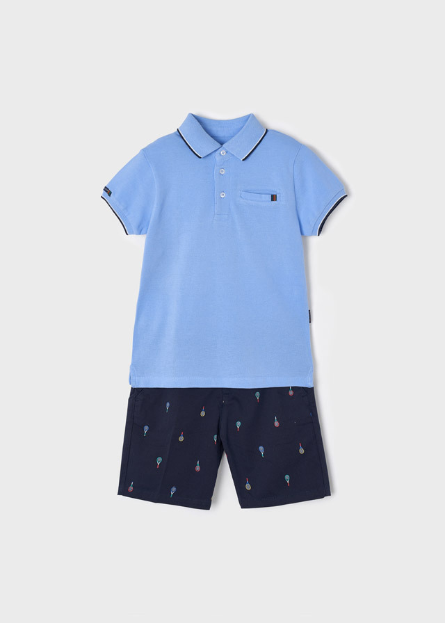 из голубого поло и шортиков