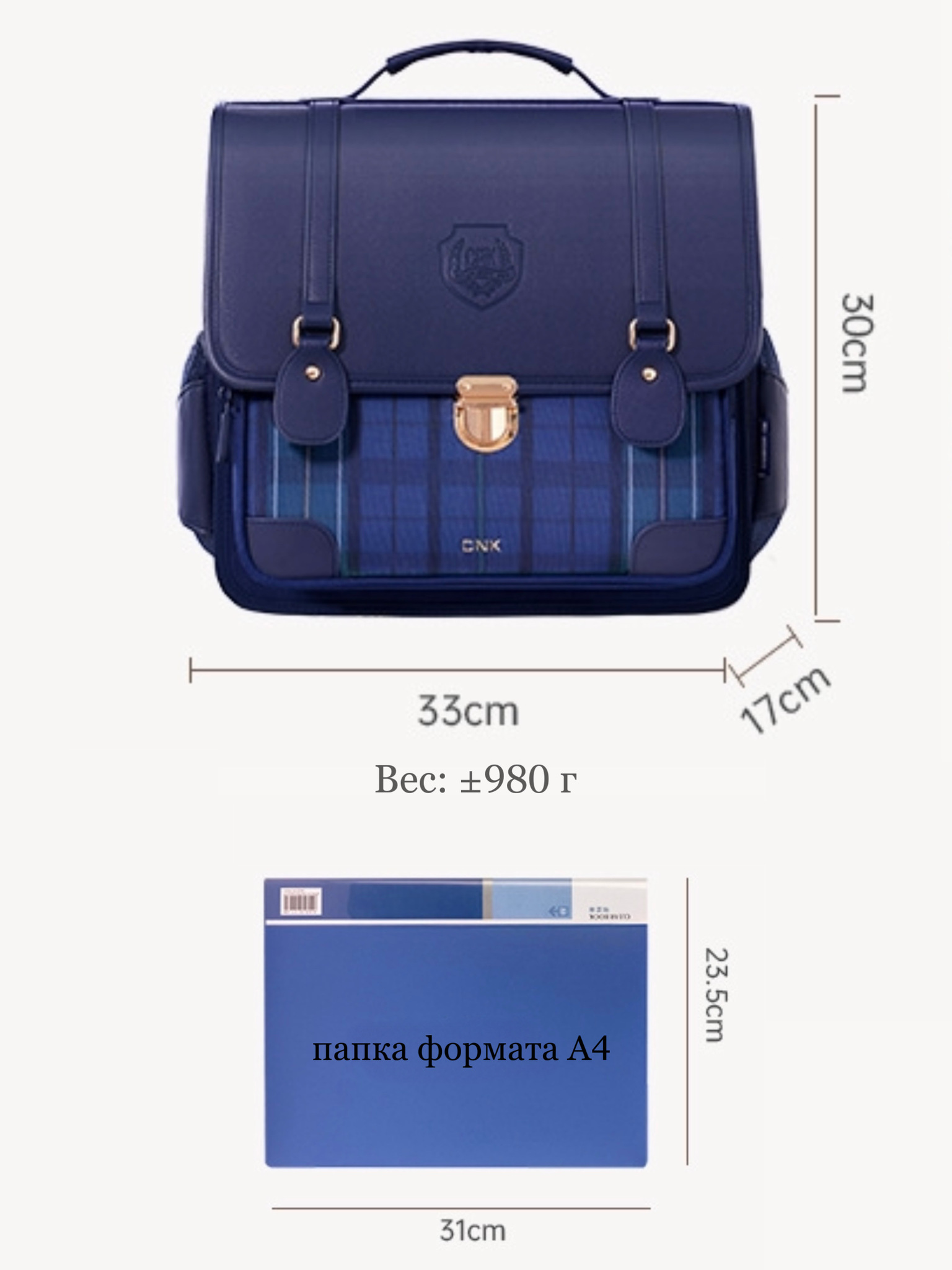учебников. Размеры сумки 33х30х17 и вес 980г.