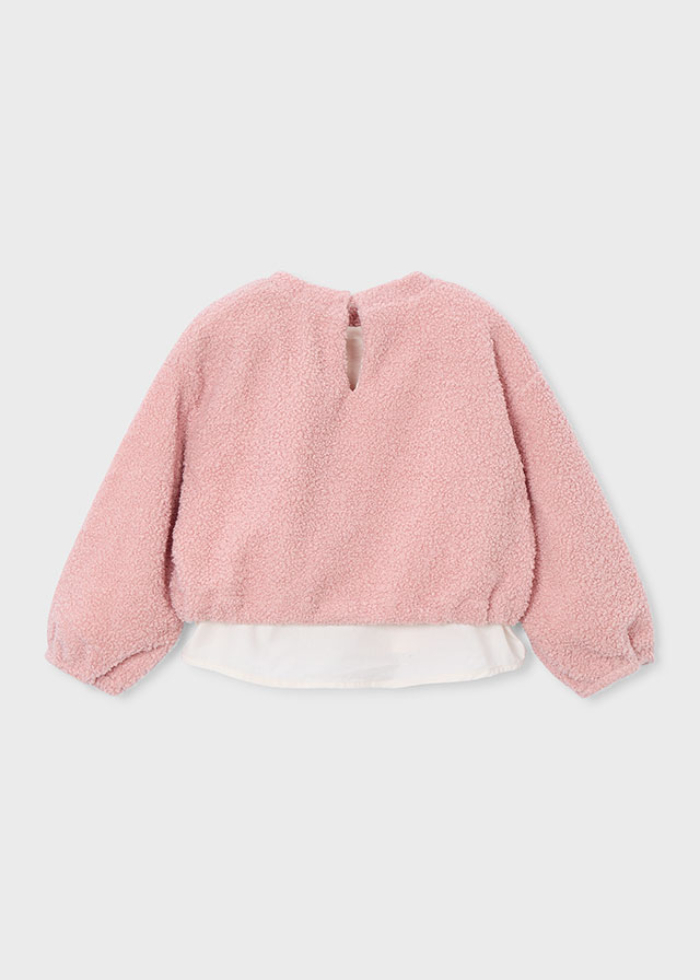 Красивый мягкий джемпер тэдди для девочкис эффектом выпущенной рубашки не оставитВашу доченьку без внимания. Прекраснобудет смотреться с любым низом.