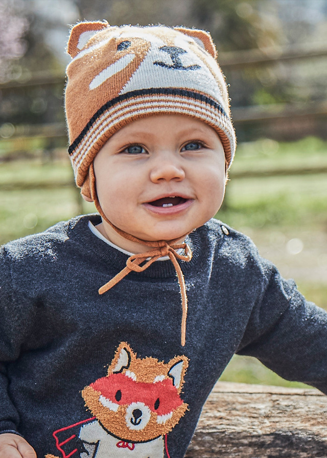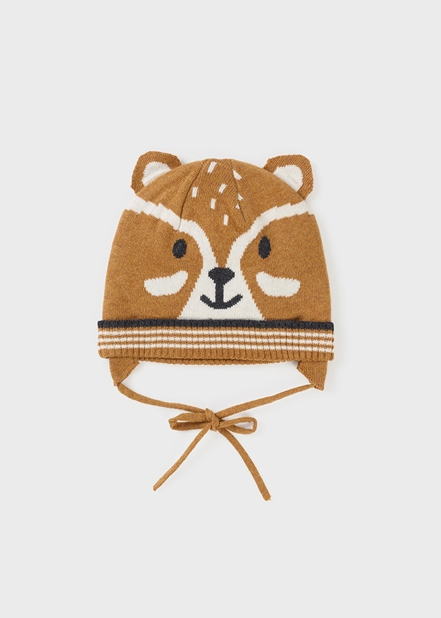 Милая и очень красивая шапка назавязках арахисового цвета станетотличным подарком малышу,которая преобразит любуюверхнюю одежду.