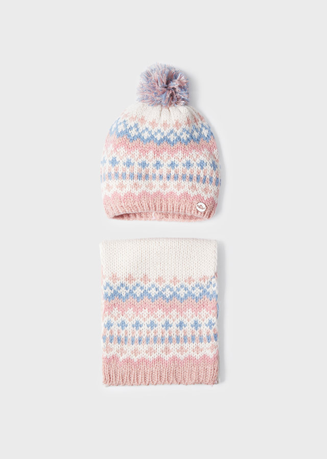 Очень нежный и мягкий комплект длядевочек из шапки с помпоном и длиннымшарфом преобразит любую верхнююодежду.