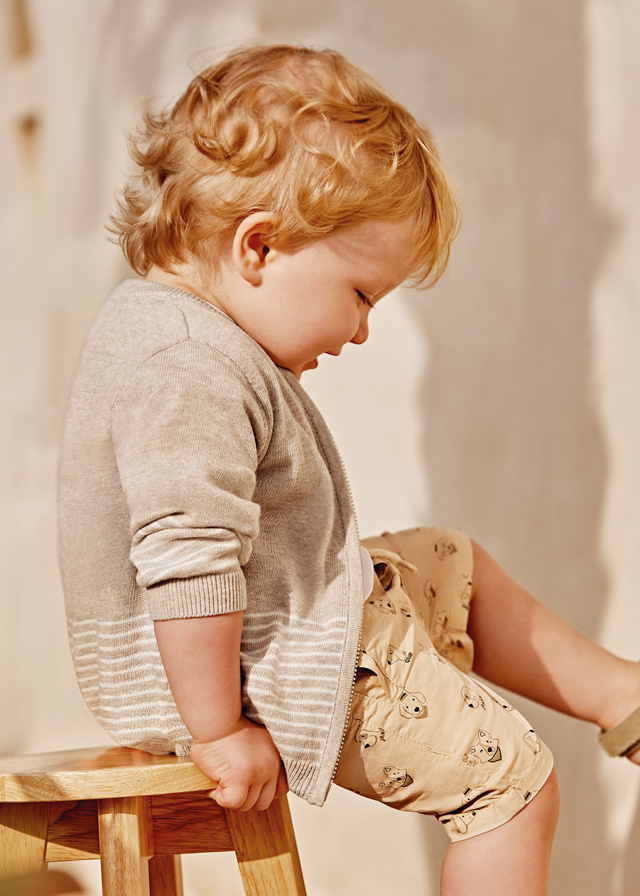 Милые шорты песочного цвета срисунком собачек очень классносмотрятся. У них очень удобнаяпосадка, что так важно для выбораодежды малышам.