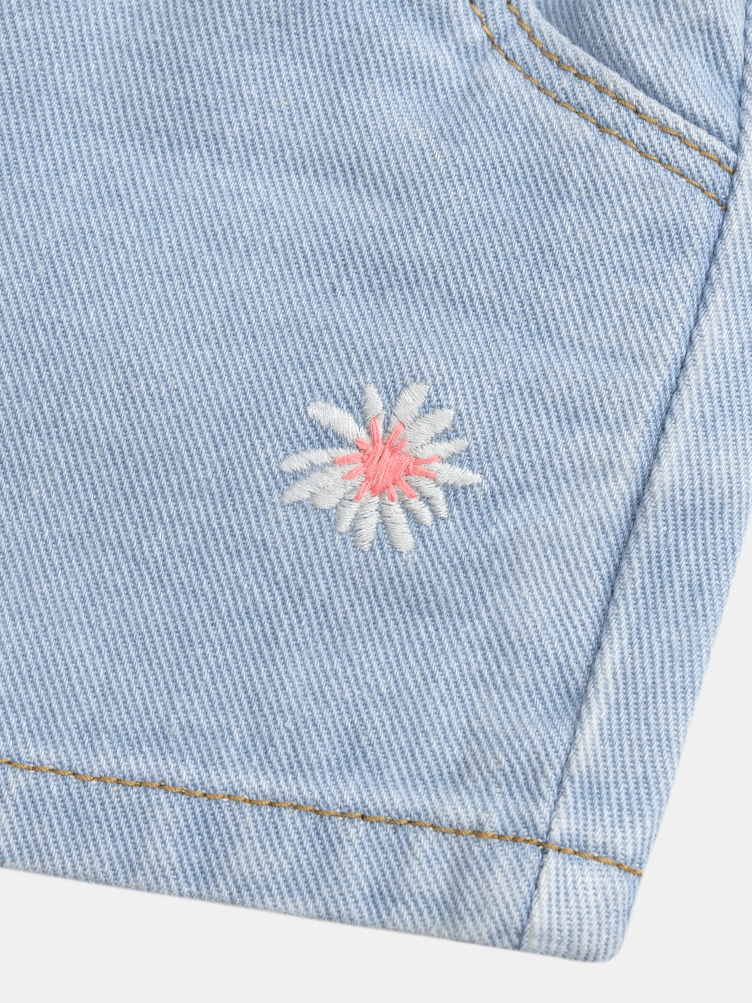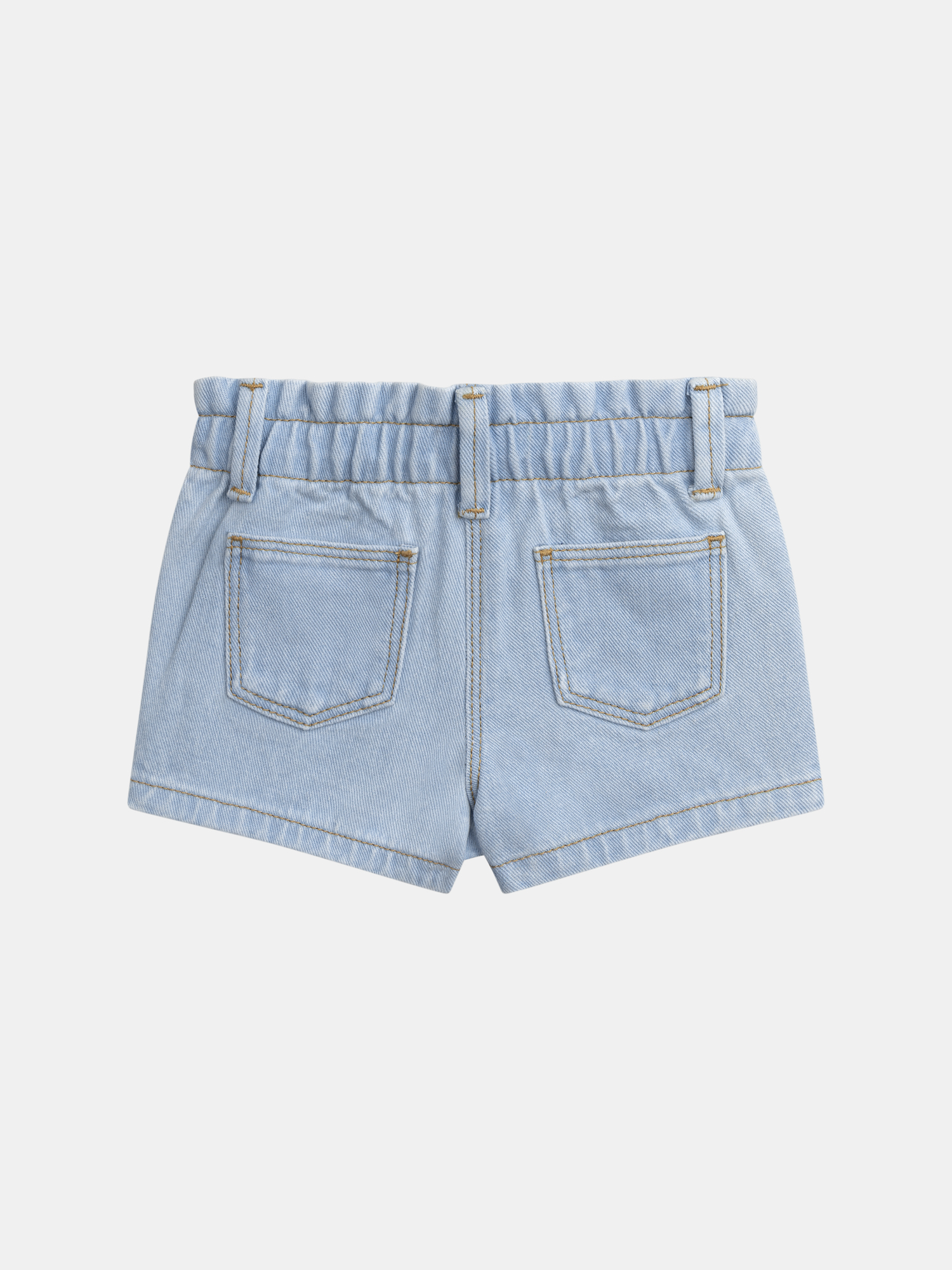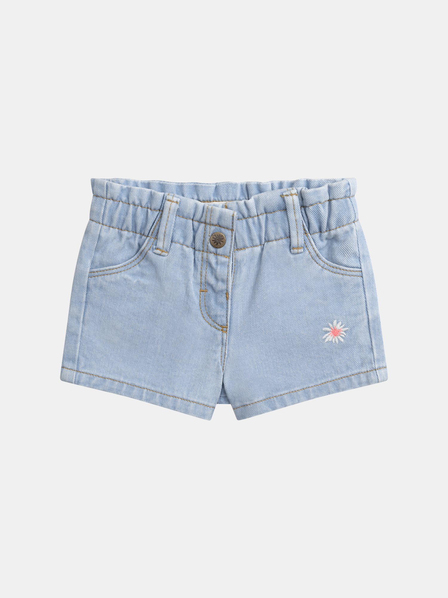 Модные и очень красивые шорты приятногоцвета прекрасно подойдут малышке.У них удобный крой, благодарячему образ становится идеальным дляребенка.