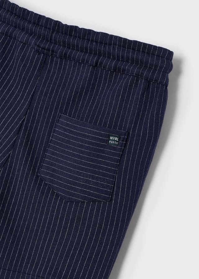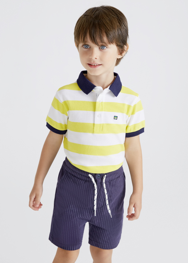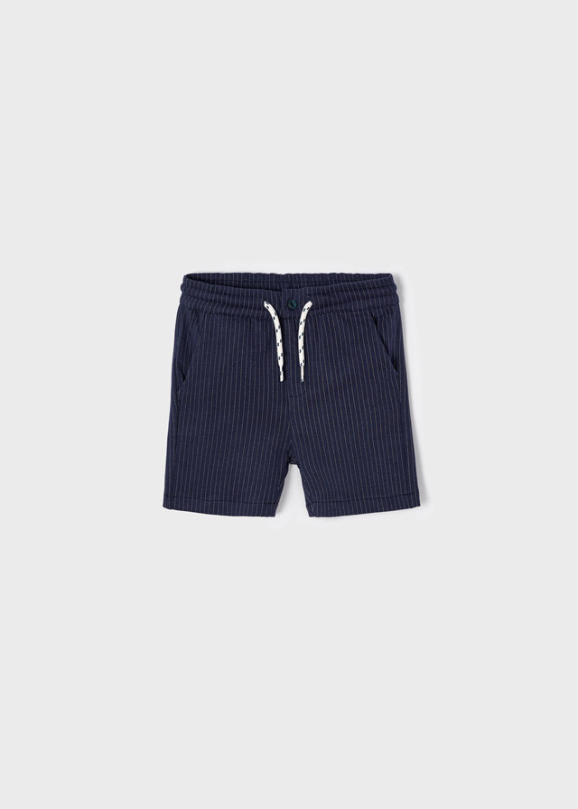 Удобные шорты глубоко синегоцвета с беленькой полоскойпрекрасно подойдут для городскогообраза. Ремешок на поясе поможетотрегулировать посадку.