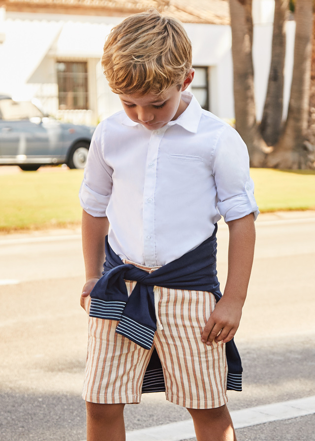 Классные летние шорты в полоскубудут сочетаться и с футболками,и с рубашкой. Они выглядят как брючки,поэтому в них мальчик будет какнастоящий джентельмен.