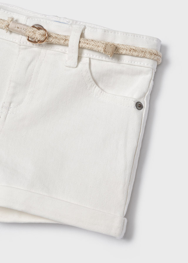 Очень милые джинсовые шортикисветло-бежевого цвета отличноподойдут для лета. У шортиков естькрасивый плетеный ремешок, которыйподчеркнет образ.