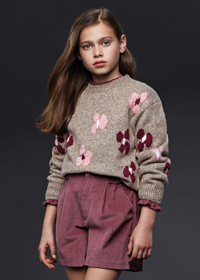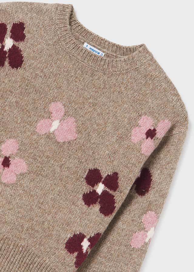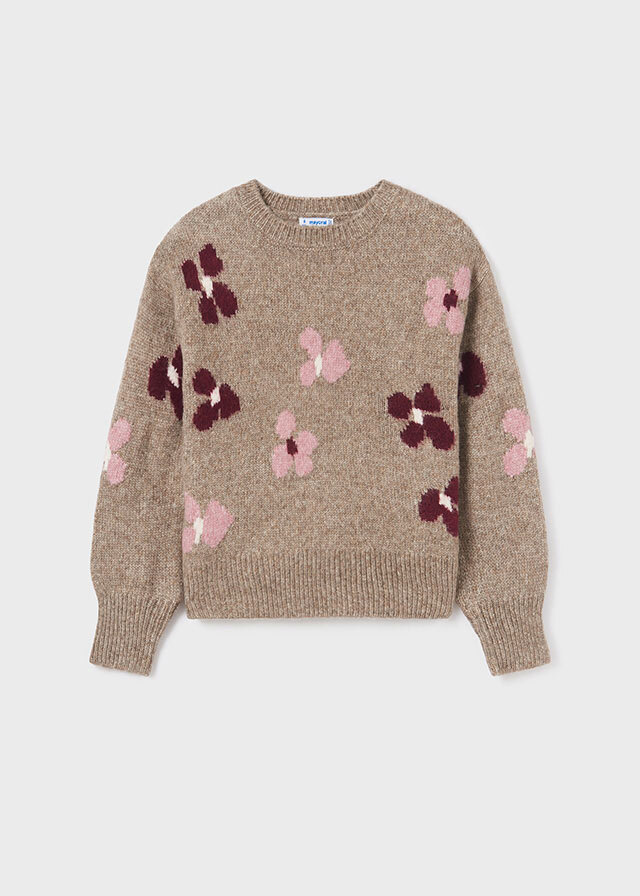 цветами вязаный свитер для девочки