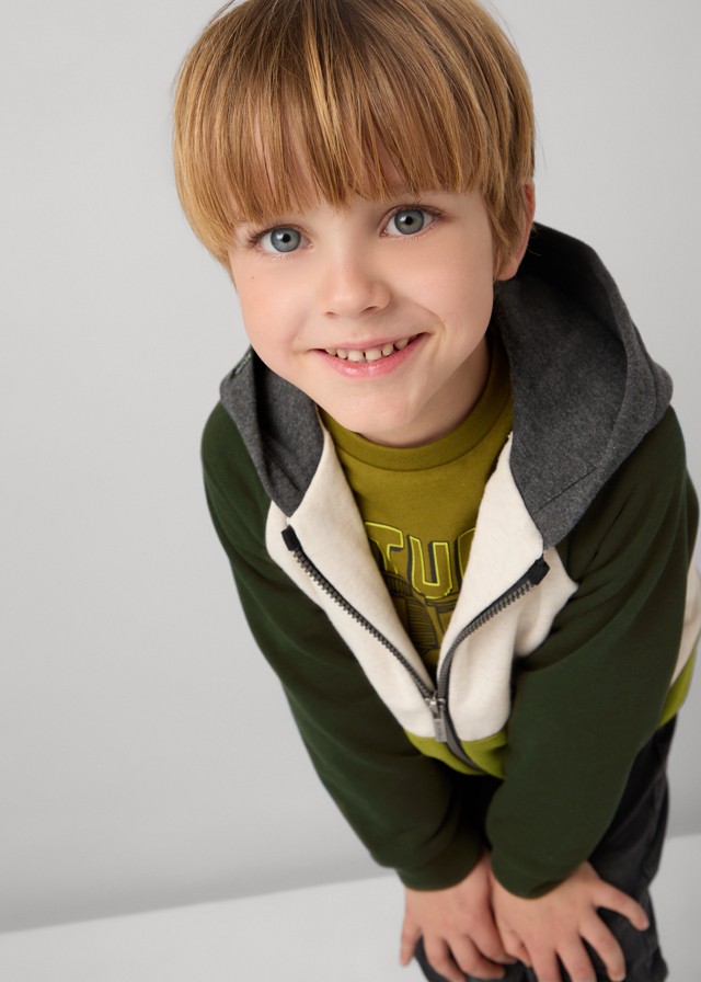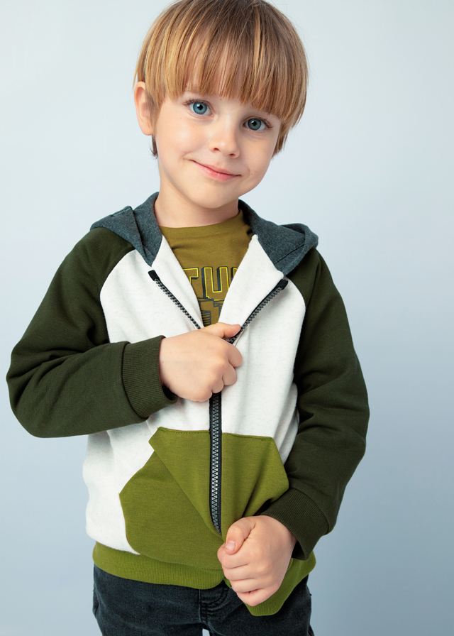 Удобная толстовка с капюшономна молнии - это идеальныйвариант для мальчика. Вместе соспортивными штанами Высоздадите классный повседневныйкостюм.