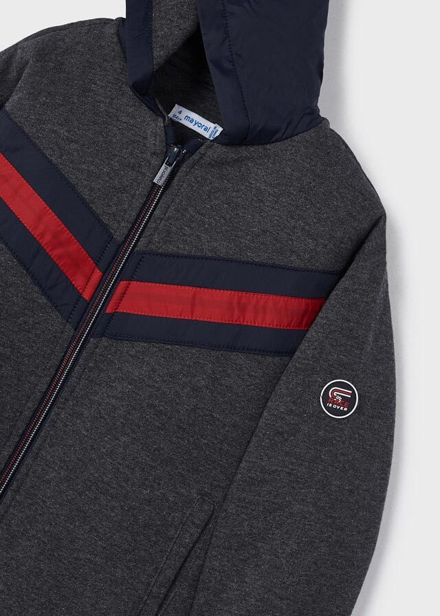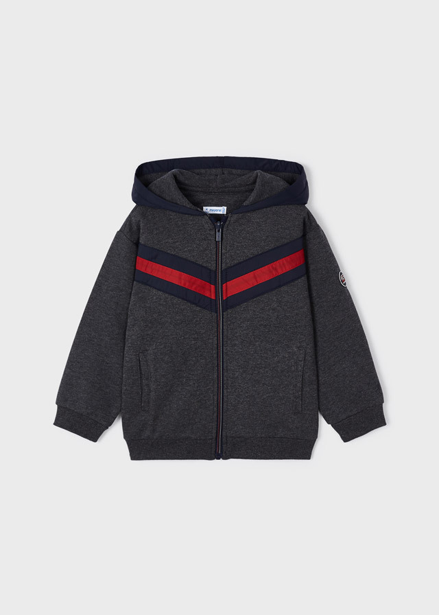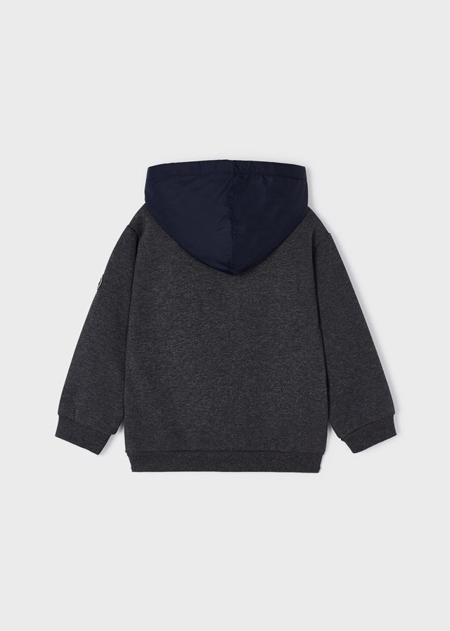 Удобная толстовка с капюшономсерого цвета - это идеальныйвариант для мальчика. Вместе соспортивными штанами Высоздадите эффектный костюм.