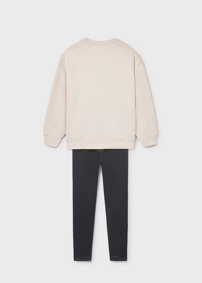 Прекрасный комплект из приятнойк телу толстовки с декором с эффектными леггинсами отличноподойдет для прогулок на каждый день.