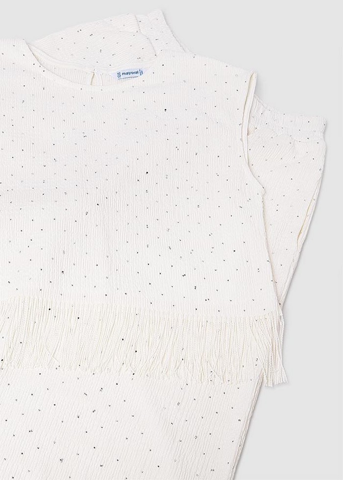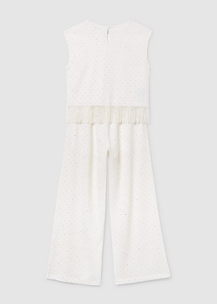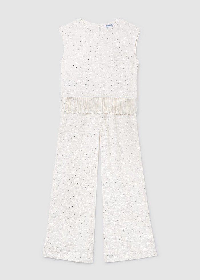 Потрясающий декорированный костюмиз топа и брюк сделает из дочки стильнуюледи. А если комплект надеть вместес кроссовками, то образ получитсяочень современным.
