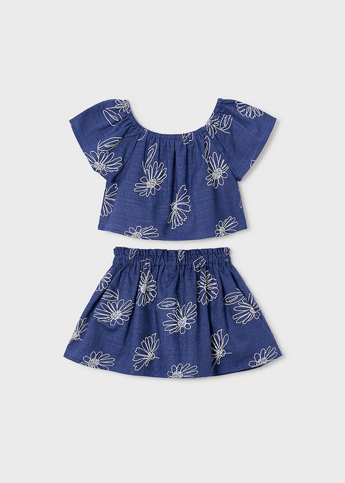 Классный комплект из топа и юбкибудет всегда в моде. Отличный вариантдля подготовки к летнем сезону.В костюме Вашей дочке будет оченьудобно и комфортно. Подкладкавыполнена из 100% хлопка.