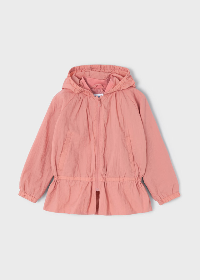 Стильная водонепроницаемаяветровка с капюшоном нежно-розовогоцвета защитит Вашу доченьку от дождяи сделает образ очень красивым.