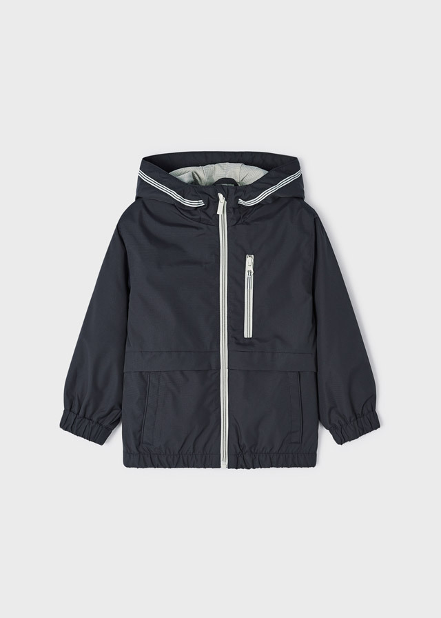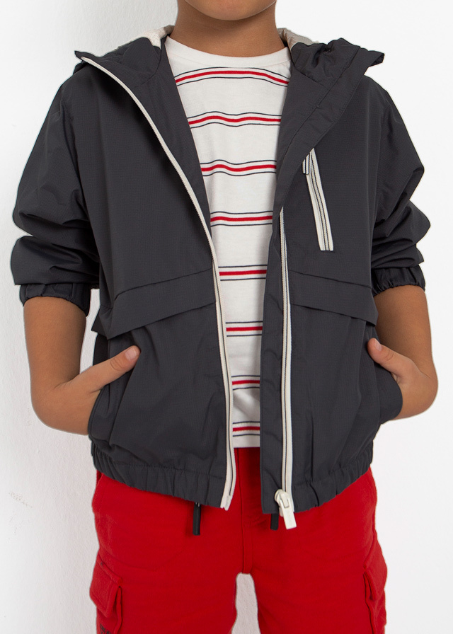 Черная водонепроницаемая ветровкас капюшоном отлично поможетобновить базовый гардероб. Курткаидеально подойдет для прогулокВашему маленькому непоседе.