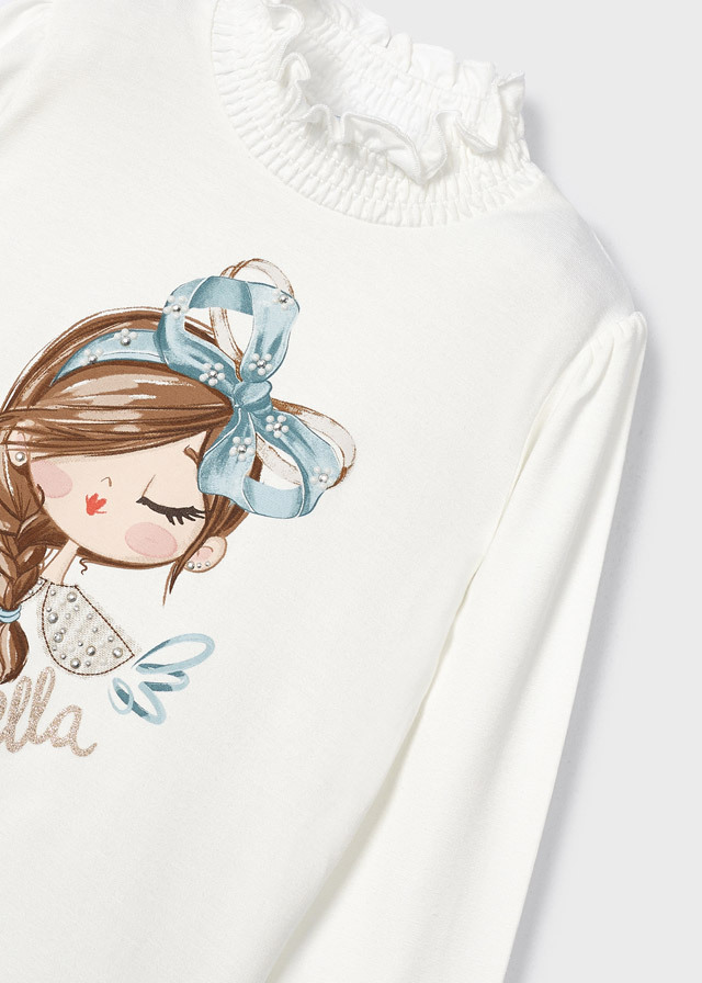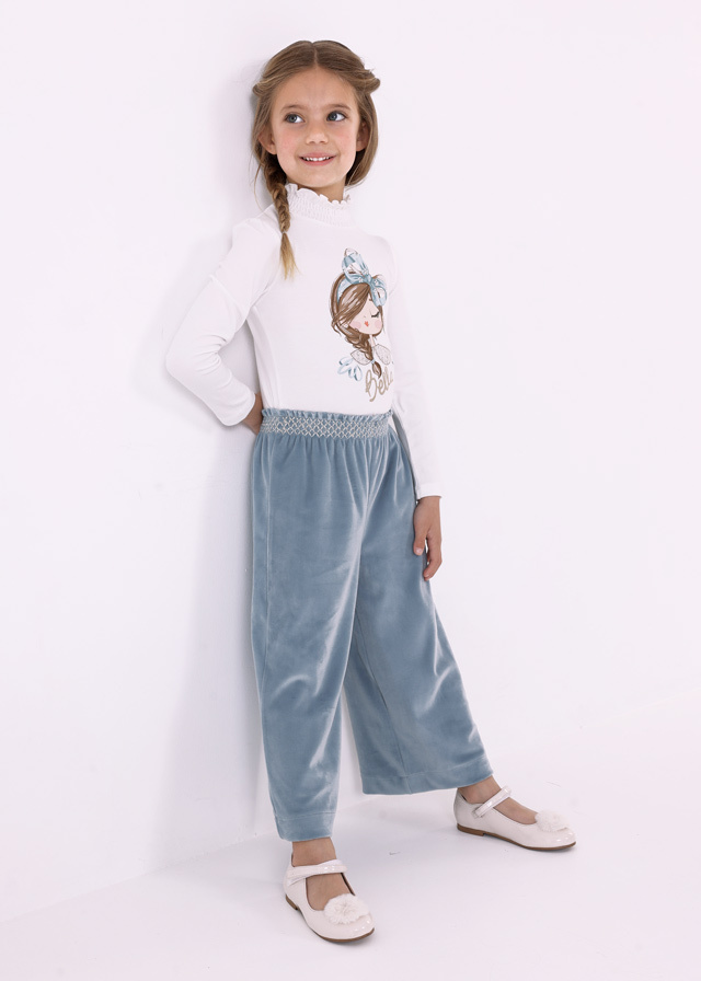 Милая водолазка для девочки оченьприятная к телу. Необычно оформленноегорлышко и декорированный рисунокс голубым бантом отлично подойдетна каждый день или на праздник.