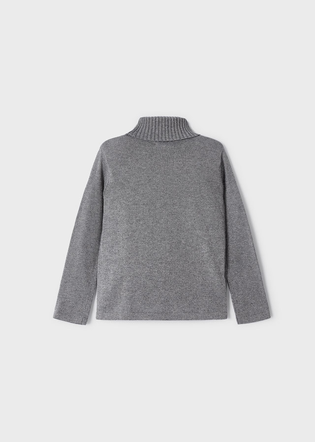 Удобная и мягкая водолазка серогоцвета с люрексом прекрасно подойдетна каждый день. Кофта будет сочетатьсяи с юбкой, и со штанами. Отличнаябазовая вещь для гардероба Вашей девочки.