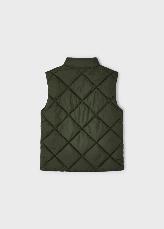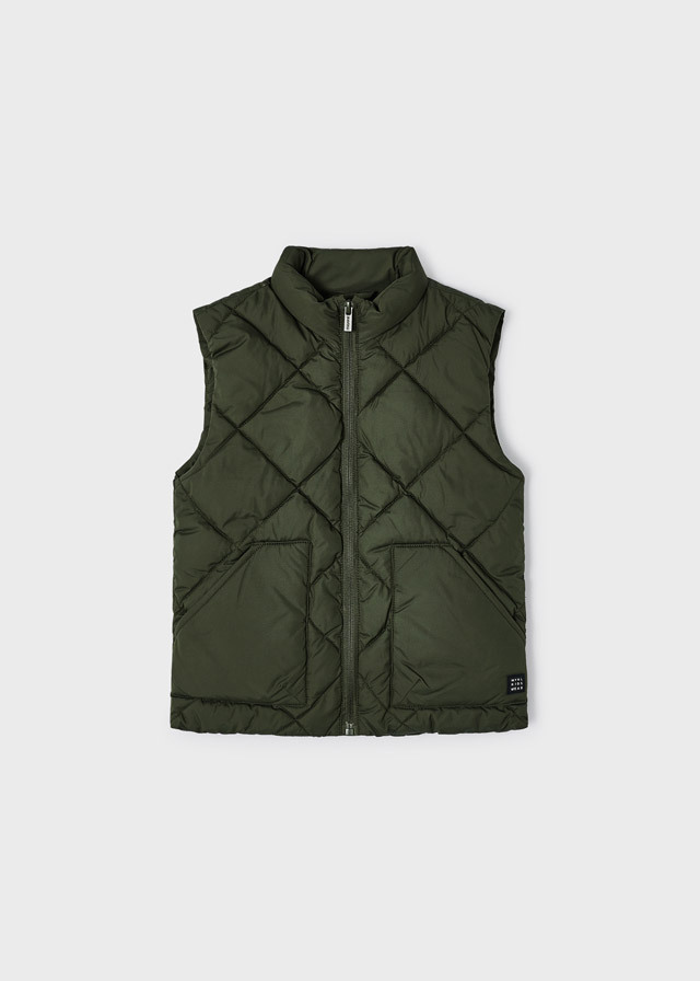 Стеганная жилетка натуральногозеленого цвета преобразит Вашегомальчика этой осенью и весной.Благодаря своему элегантному илаконичному крою ее будет легкосочетать с любыми брюками иджинсами.