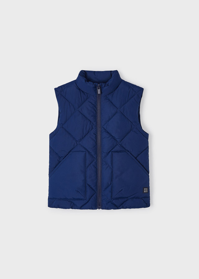 Стеганная жилетка глубокогосинего цвета преобразит Вашегомальчика этой осенью и весной.Благодаря своему элегантному илаконичному крою ее будет легкосочетать с любыми брюками иджинсами.