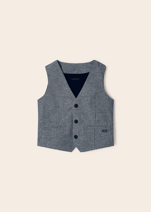 Элегантная костюмная жилеткуимеет отличную посадку.В сочетании с брючными шортамитакой же расцветки образ будеткак у джентельмена.